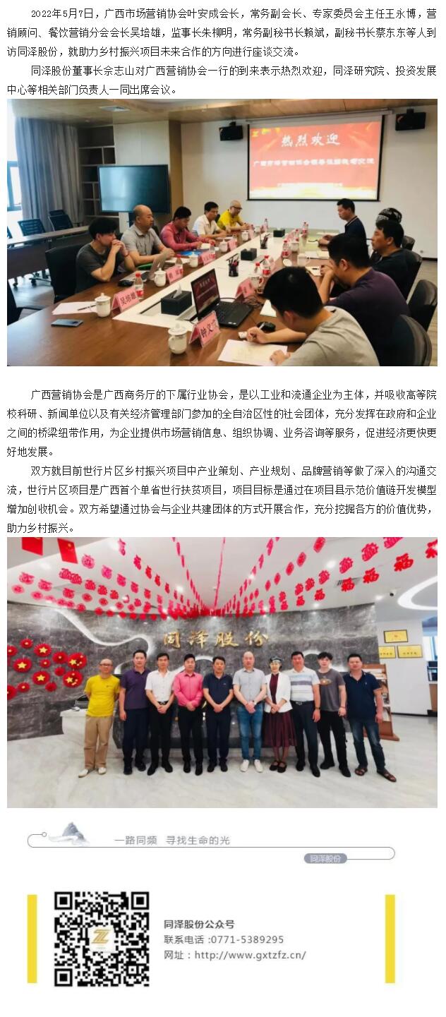 助力鄉(xiāng)村振興,共謀行業(yè)發(fā)展- 廣西市場(chǎng)營(yíng)銷協(xié)會(huì)到訪同澤股份