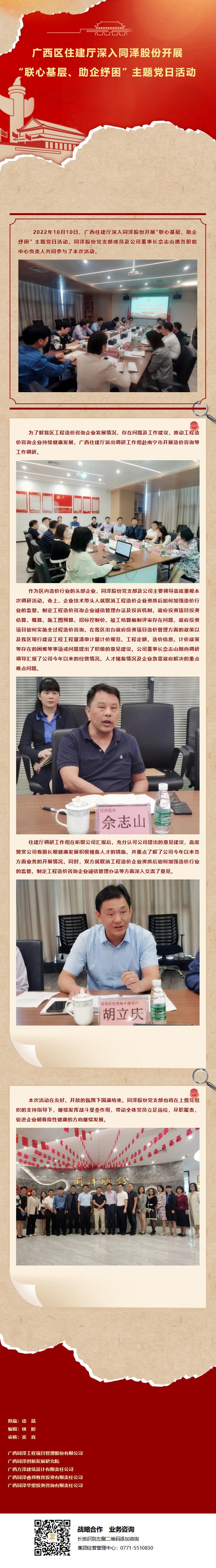 廣西區住建廳深入同澤股份開展“聯心基層、助企紓困” 主題黨日活動